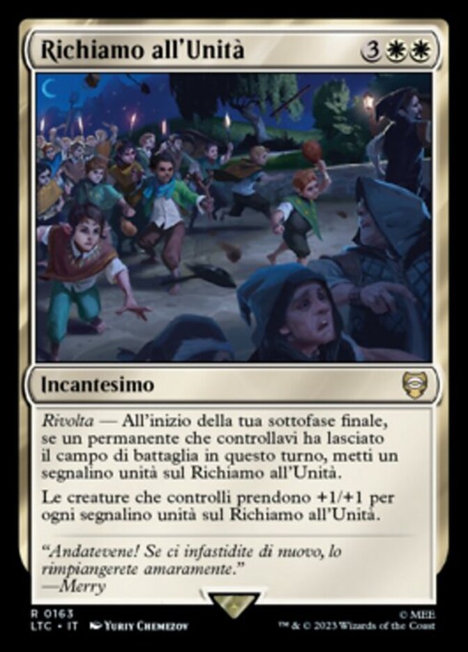 | Rules | Revolt — At the beginning of your end step, if a permanent you controlled left the battlefield this turn, put a unity counter on Call for Unity. Creatures you control get +1/+1 for each unity counter on Call for Unity. |