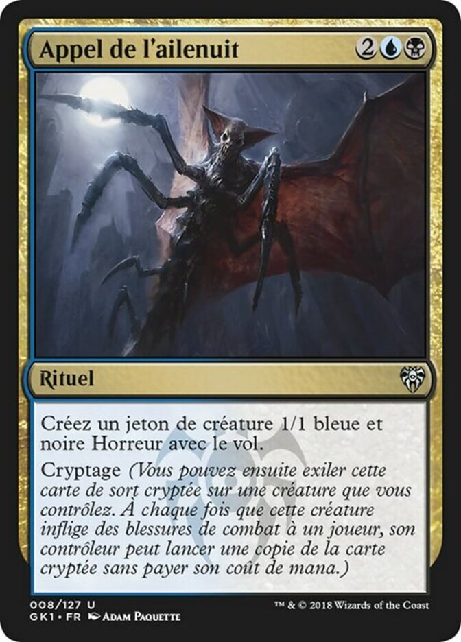 | Rules | Create a 1/1 blue and black Horror creature token with flying. Cipher (Then you may exile this spell card encoded on a creature you control. Whenever that creature deals combat damage to a player, its controller may cast a copy of the encoded card without paying its mana cost.) |