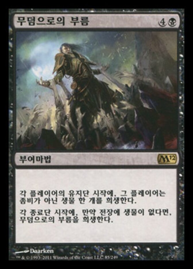 | Rules | At the beginning of each player's upkeep, that player sacrifices a non-Zombie creature. At the beginning of the end step, if no creatures are on the battlefield, sacrifice Call to the Grave. |