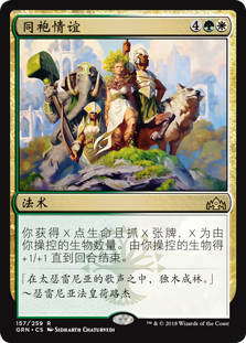 | Rules | You gain X life and draw X cards, where X is the number of creatures you control. Creatures you control get +1/+1 until end of turn. |