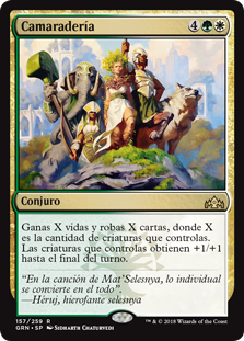 | Rules | You gain X life and draw X cards, where X is the number of creatures you control. Creatures you control get +1/+1 until end of turn. |