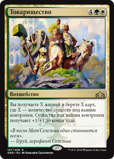 | Rules | You gain X life and draw X cards, where X is the number of creatures you control. Creatures you control get +1/+1 until end of turn. |