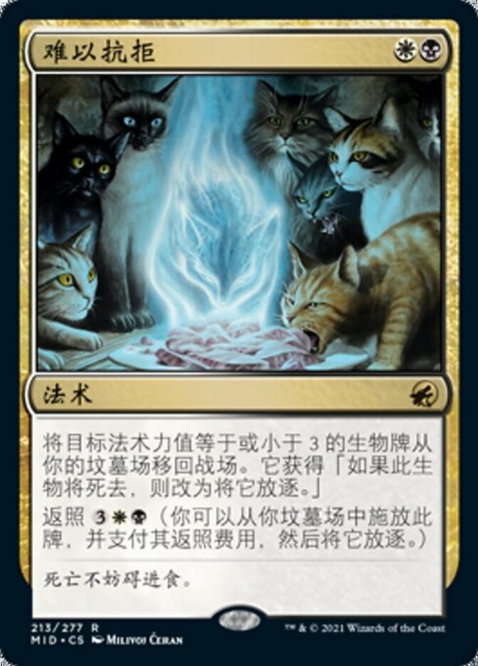 | Rules | Return target creature card with mana value 3 or less from your graveyard to the battlefield. It gains "If this creature would die, exile it instead." Flashback (You may cast this card from your graveyard for its flashback cost. Then exile it.) |