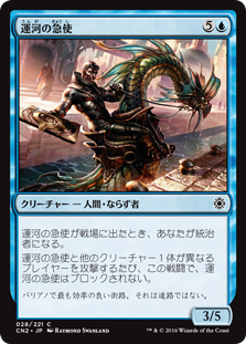| Rules | When Canal Courier enters the battlefield, you become the monarch. Whenever Canal Courier and another creature attack different players, Canal Courier can't be blocked this combat. |