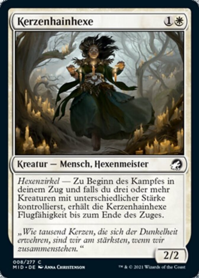 | Rules | Coven — At the beginning of combat on your turn, if you control three or more creatures with different powers, Candlegrove Witch gains flying until end of turn. |