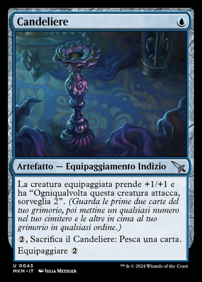 | Rules | Equipped creature gets +1/+1 and has "Whenever this creature attacks, surveil 2." (Look at the top two cards of your library, then put any number of them into your graveyard and the rest on top of your library in any order.) , Sacrifice Candlestick: Draw a card. Equip |