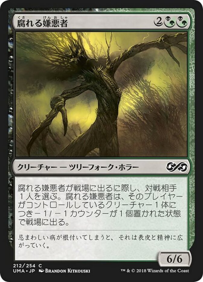 | Rules | As Canker Abomination enters the battlefield, choose an opponent. Canker Abomination enters the battlefield with a -1/-1 counter on it for each creature that player controls. |