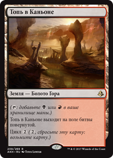 | Rules | (: Add or .) Canyon Slough enters the battlefield tapped. Cycling (, Discard this card: Draw a card.) |