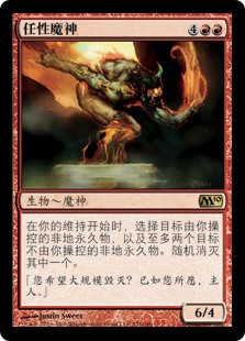 | Rules | At the beginning of your upkeep, choose target nonland permanent you control and up to two target nonland permanents you don't control. Destroy one of them at random. |