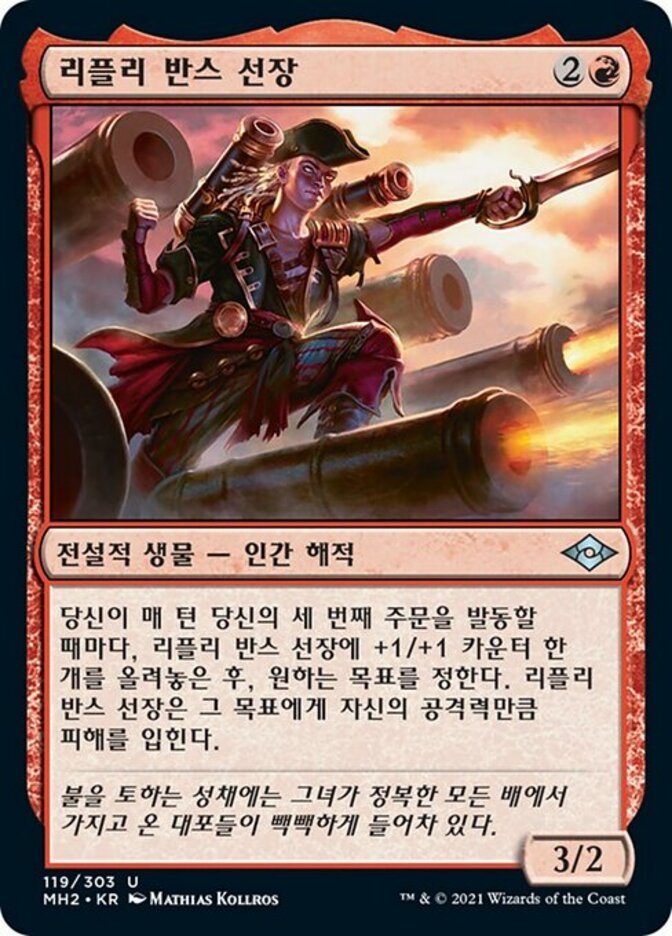 | Rules | Whenever you cast your third spell each turn, put a +1/+1 counter on Captain Ripley Vance, then it deals damage equal to its power to any target. |