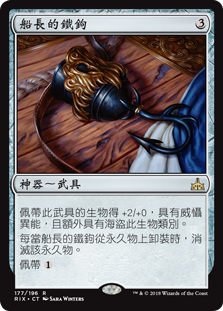 | Rules | Equipped creature gets +2/+0, has menace, and is a Pirate in addition to its other creature types. Whenever Captain's Hook becomes unattached from a permanent, destroy that permanent. Equip |