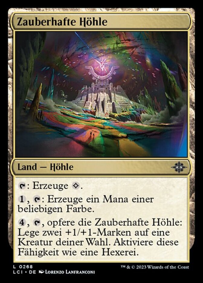 | Rules | : Add . , : Add one mana of any color. , , Sacrifice Captivating Cave: Put two +1/+1 counters on target creature. Activate only as a sorcery. |