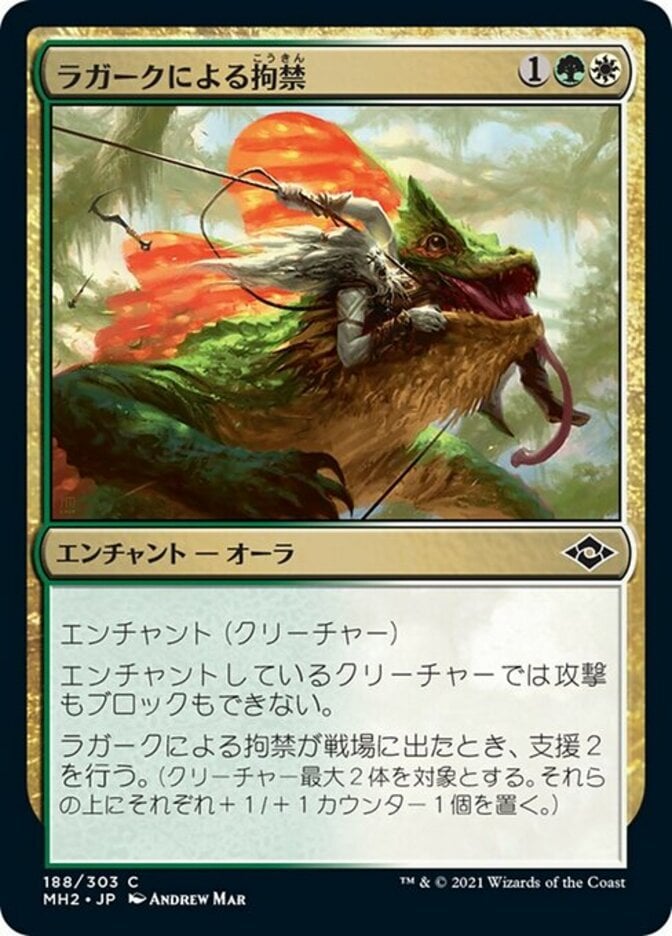 When Captured by Lagacs enters the battlefield, support 2. (Put a +1/+1 counter on each of up to two target creatures.)