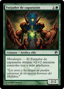 | Rules | Metalcraft — Carapace Forger gets +2/+2 as long as you control three or more artifacts. |