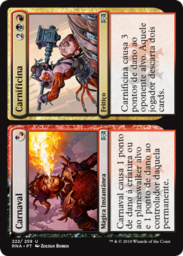 | Rules | Carnival deals 1 damage to target creature or planeswalker and 1 damage to that permanent's controller. // Carnage deals 3 damage to target opponent. That player discards two cards. |