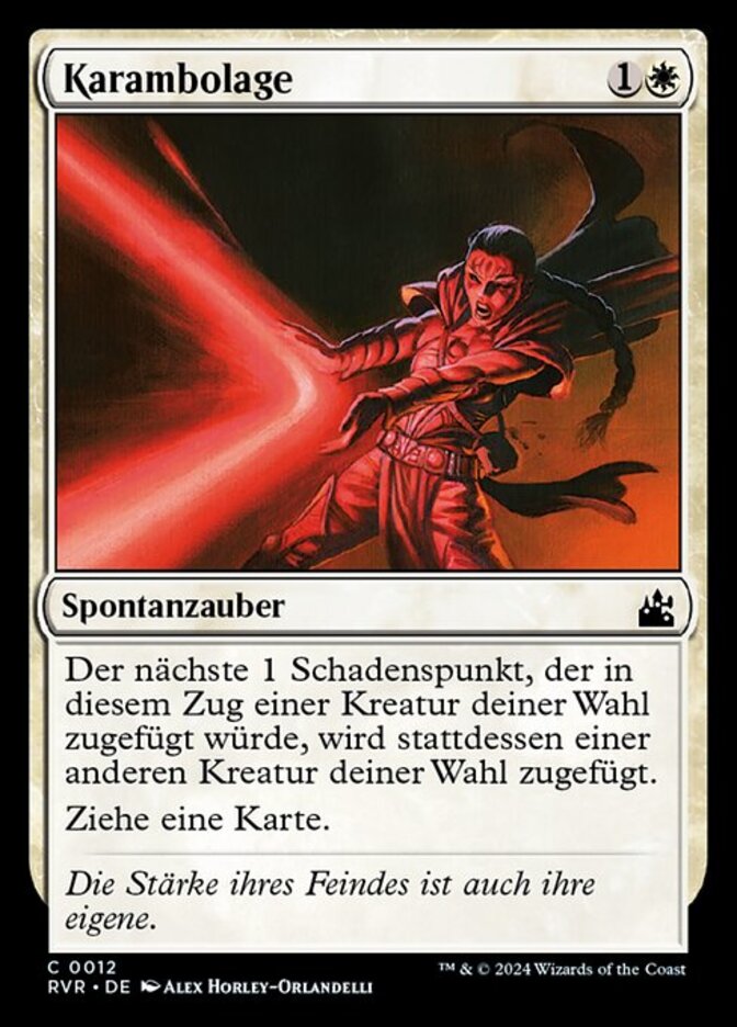 | Rules | The next 1 damage that would be dealt to target creature this turn is dealt to another target creature instead. Draw a card. |