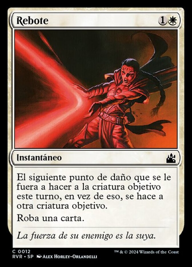 | Rules | The next 1 damage that would be dealt to target creature this turn is dealt to another target creature instead. Draw a card. |