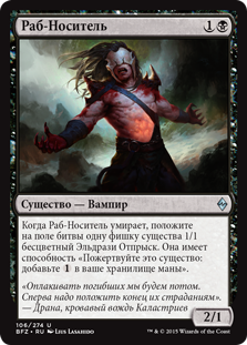 | Rules | When Carrier Thrall dies, create a 1/1 colorless Eldrazi Scion creature token. It has "Sacrifice this creature: Add ." |