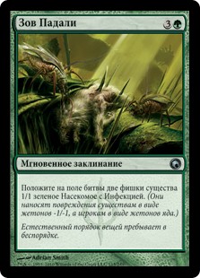 | Rules | Create two 1/1 green Phyrexian Insect creature tokens with infect. (They deal damage to creatures in the form of -1/-1 counters and to players in the form of poison counters.) |