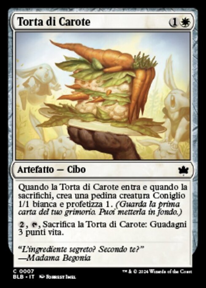 | Rules | When Carrot Cake enters and when you sacrifice it, create a 1/1 white Rabbit creature token and scry 1. (Look at the top card of your library. You may put that card on the bottom.) , , Sacrifice Carrot Cake: You gain 3 life. |