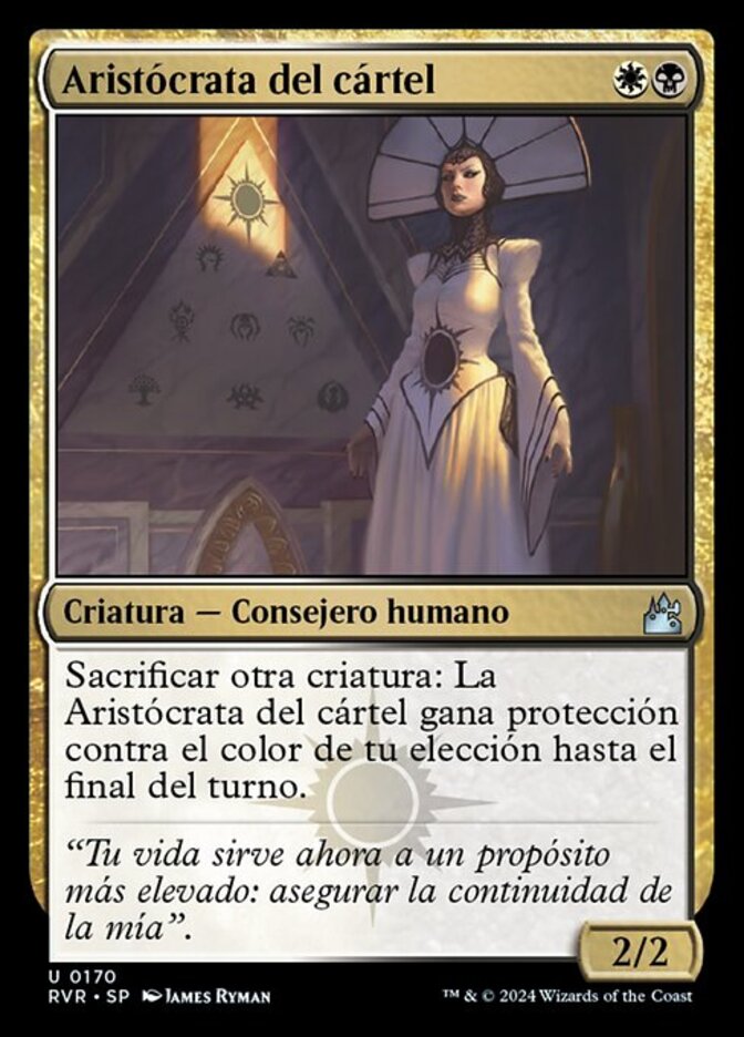 | Rules | Sacrifice another creature: Cartel Aristocrat gains protection from the color of your choice until end of turn. |