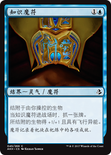 | Rules | Enchant creature you control When Cartouche of Knowledge enters the battlefield, draw a card. Enchanted creature gets +1/+1 and has flying. |