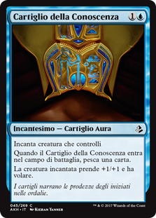 | Rules | Enchant creature you control When Cartouche of Knowledge enters the battlefield, draw a card. Enchanted creature gets +1/+1 and has flying. |