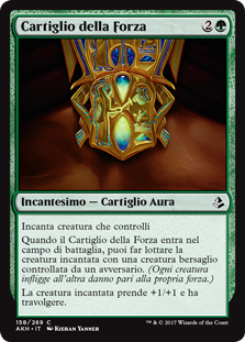 | Rules | Enchant creature you control When Cartouche of Strength enters the battlefield, you may have enchanted creature fight target creature an opponent controls. (Each deals damage equal to its power to the other.) Enchanted creature gets +1/+1 and has trample. |