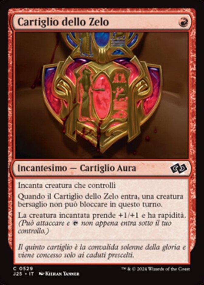 | Rules | Enchant creature you control When Cartouche of Zeal enters the battlefield, target creature can't block this turn. Enchanted creature gets +1/+1 and has haste. |