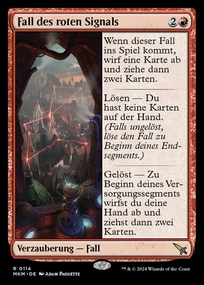 | Rules | When this Case enters the battlefield, discard a card, then draw two cards. To solve — You have no cards in hand. (If unsolved, solve at the beginning of your end step.) Solved — At the beginning of your upkeep, discard your hand, then draw two cards. |