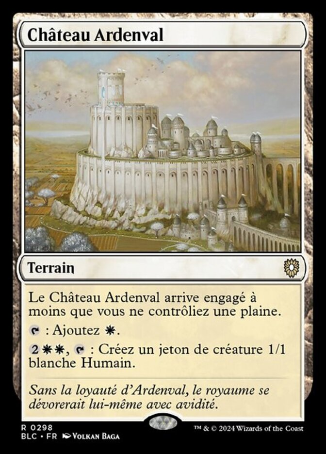 | Rules | Castle Ardenvale enters the battlefield tapped unless you control a Plains. : Add . , : Create a 1/1 white Human creature token. |