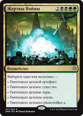 | Rules | Choose one or more — • Destroy target artifact. • Destroy target creature. • Destroy target enchantment. • Destroy target land. • Destroy target planeswalker. |