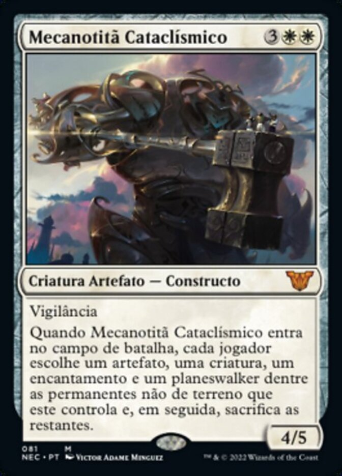 | Rules | Vigilance When Cataclysmic Gearhulk enters the battlefield, each player chooses an artifact, a creature, an enchantment, and a planeswalker from among the nonland permanents they control, then sacrifices the rest. |