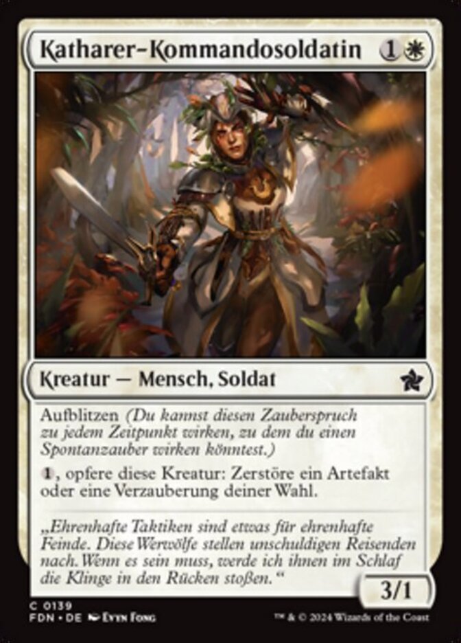| Rules | Flash , Sacrifice Cathar Commando: Destroy target artifact or enchantment. |