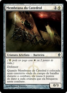 | Rules | ( can be paid with either or 2 life.) Defender When Cathedral Membrane dies during combat, it deals 6 damage to each creature it blocked this combat. |