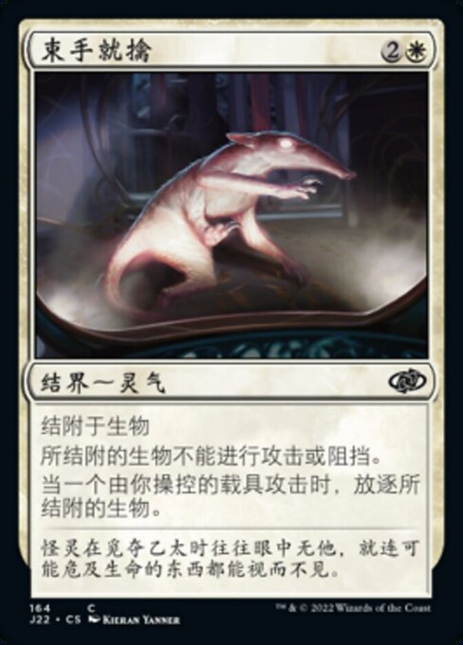 | Rules | Enchant creature Enchanted creature can't attack or block. When a Vehicle you control attacks, exile enchanted creature. |