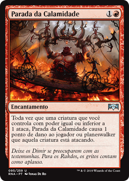 | Rules | Whenever a creature you control with power 1 or less attacks, Cavalcade of Calamity deals 1 damage to the player or planeswalker that creature is attacking. |