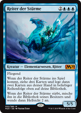 | Rules | Flying When Cavalier of Gales enters the battlefield, draw three cards, then put two cards from your hand on top of your library in any order. When Cavalier of Gales dies, shuffle it into its owner's library, then scry 2. |