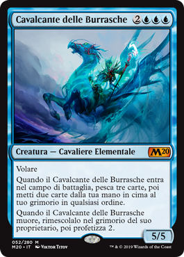 | Rules | Flying When Cavalier of Gales enters the battlefield, draw three cards, then put two cards from your hand on top of your library in any order. When Cavalier of Gales dies, shuffle it into its owner's library, then scry 2. |