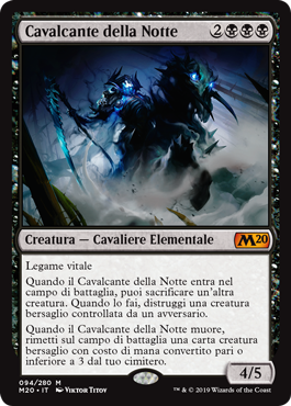 | Rules | Lifelink When Cavalier of Night enters the battlefield, you may sacrifice another creature. When you do, destroy target creature an opponent controls. When Cavalier of Night dies, return target creature card with mana value 3 or less from your graveyard to the battlefield. |