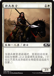 | Rules | When Cavalry Drillmaster enters the battlefield, target creature gets +2/+0 and gains first strike until end of turn. (It deals combat damage before creatures without first strike.) |