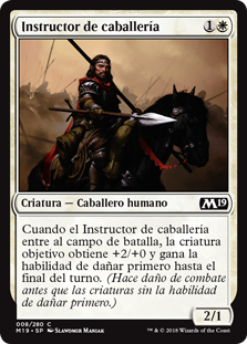 | Rules | When Cavalry Drillmaster enters the battlefield, target creature gets +2/+0 and gains first strike until end of turn. (It deals combat damage before creatures without first strike.) |