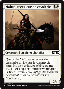 | Rules | When Cavalry Drillmaster enters the battlefield, target creature gets +2/+0 and gains first strike until end of turn. (It deals combat damage before creatures without first strike.) |
