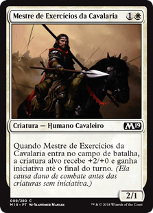 | Rules | When Cavalry Drillmaster enters the battlefield, target creature gets +2/+0 and gains first strike until end of turn. (It deals combat damage before creatures without first strike.) |