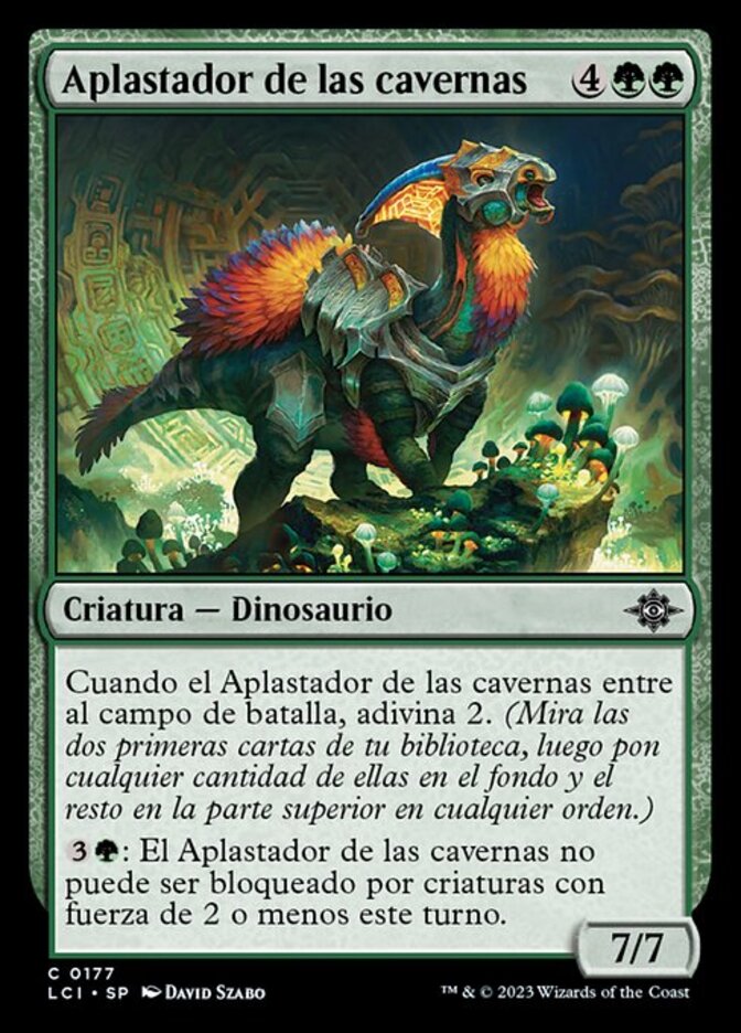 | Rules | When Cavern Stomper enters the battlefield, scry 2. (Look at the top two cards of your library, then put any number of them on the bottom and the rest on top in any order.) : Cavern Stomper can't be blocked by creatures with power 2 or less this turn. |