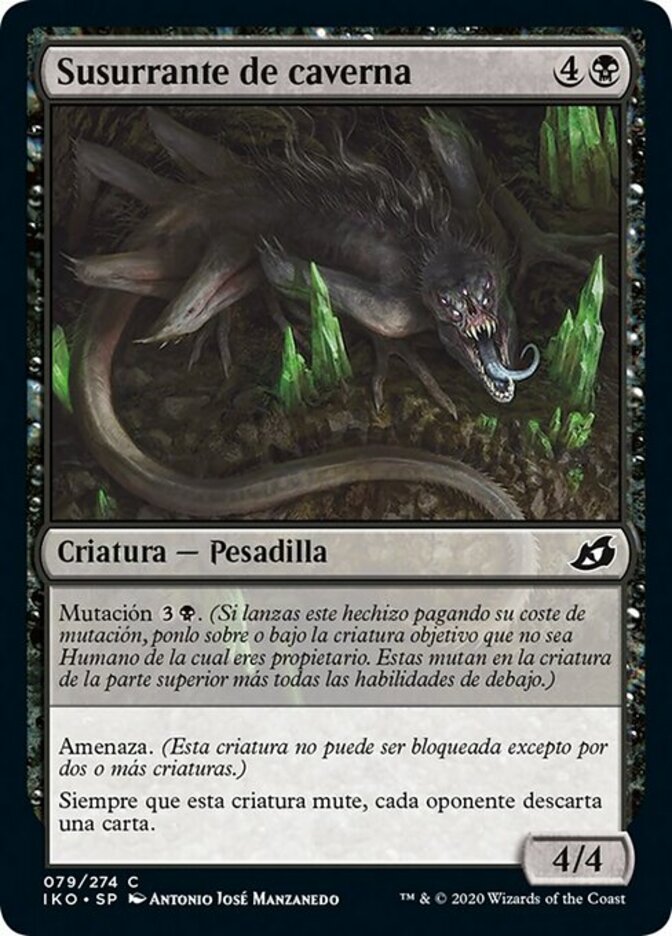 | Rules | Mutate (If you cast this spell for its mutate cost, put it over or under target non-Human creature you own. They mutate into the creature on top plus all abilities from under it.) Menace (This creature can't be blocked except by two or more creatures.) Whenever this creature mutates, each opponent discards a card. |
