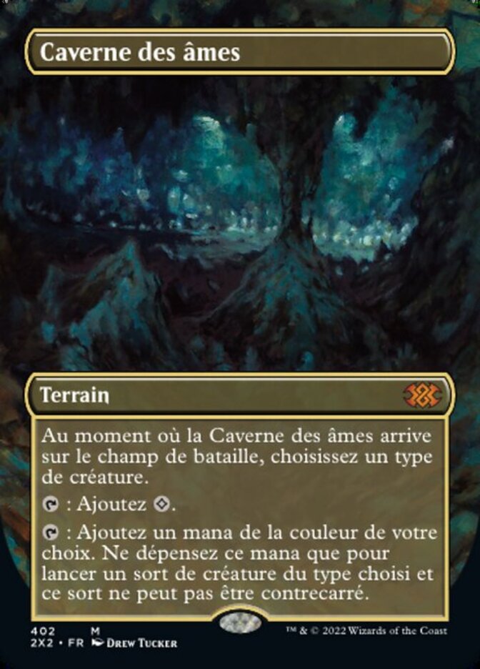 | Rules | As Cavern of Souls enters the battlefield, choose a creature type. : Add . : Add one mana of any color. Spend this mana only to cast a creature spell of the chosen type, and that spell can't be countered. |