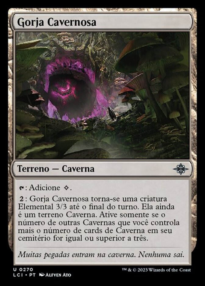 | Rules | : Add . : Cavernous Maw becomes a 3/3 Elemental creature until end of turn. It's still a Cave land. Activate only if the number of other Caves you control plus the number of Cave cards in your graveyard is three or greater. |