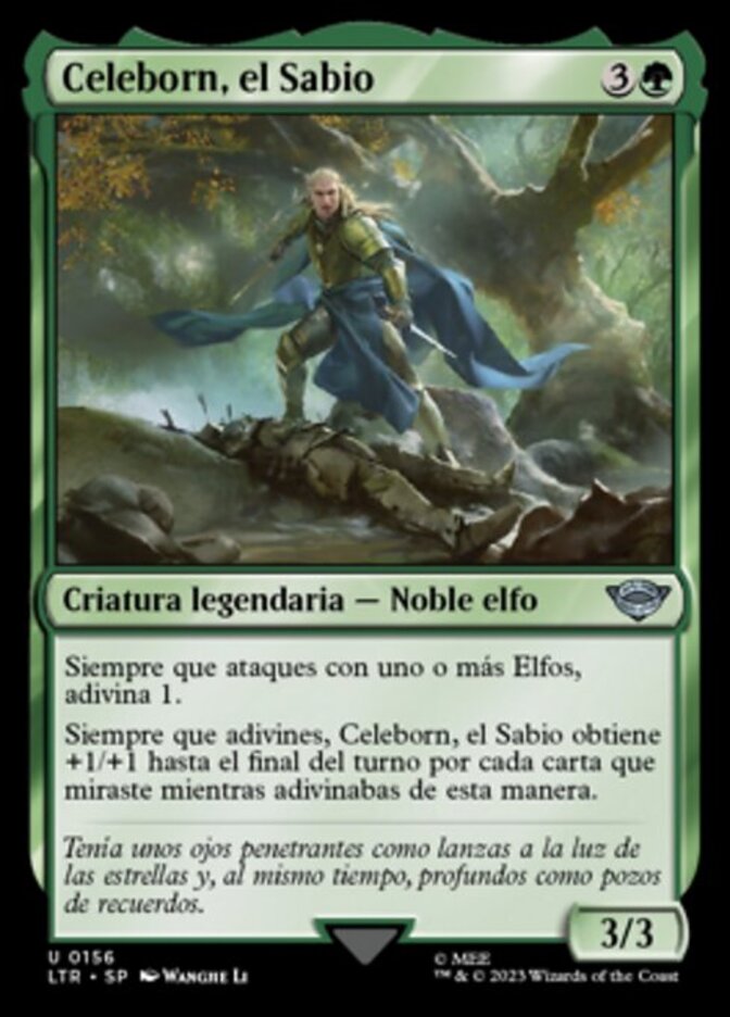 | Rules | Whenever you attack with one or more Elves, scry 1. Whenever you scry, Celeborn the Wise gets +1/+1 until end of turn for each card you looked at while scrying this way. |