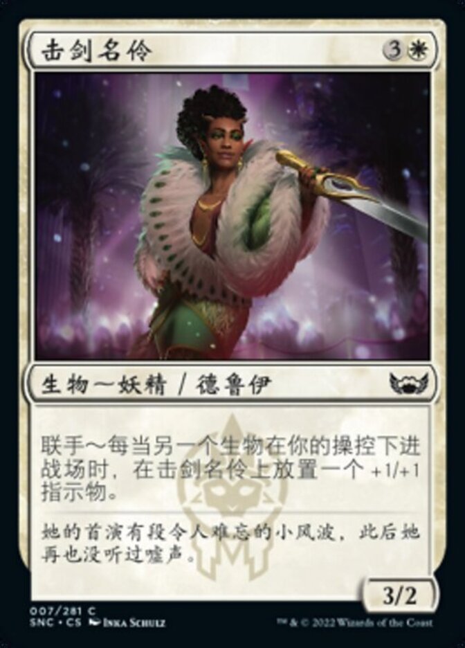 | Rules | Alliance — Whenever another creature enters the battlefield under your control, put a +1/+1 counter on Celebrity Fencer. |